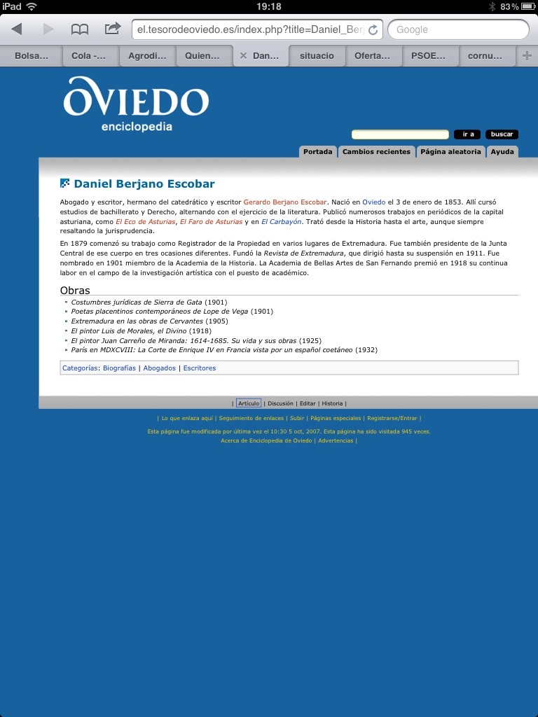 Aquí en este espacio nos adentraremos en los orígenes y prolífica carrera de uno de los prohombres más cultos y completos del siglo XIX y principios del XX , mi Tatarabuelo, desconozco cuantas horas dormía, pero deberían ser escasas, fue Registrador de la propiedad, presidente de este cuerpo hasta en tres ocasiones,historiador algo que heredó de su abuelo Francisco ya que fue historiador y escribano de la ciudad y de arte en Oviedo, Daniel, fue además dados sus profundos estudios en historia y arte, miembro de la Real Academia de la Historia y de la de Bellas Artes de Sán Fernando, fue arqueólogo también, la mayoría del arte Visigodo del museo de Cáceres fue donado por él, así como parte del que existe en el Museo arqueológico de Madrid, hay una anécdota suya a la que podemos poner imagen, ya que todos la hemos visto, en una de las excavaciones que abordó en una de sus fincas «La Nava del Rey» en Villamiel, Cáceres , encontró una tumba visigoda, al destapar yacía una momia que sólo tuvo la oportunidad de ser registrada por su retina, ya que al entrar en contacto con el aire se deshizo en cenizas, imagen que todos hemos visto en las apasionantes aventuras de Indiana Jones.