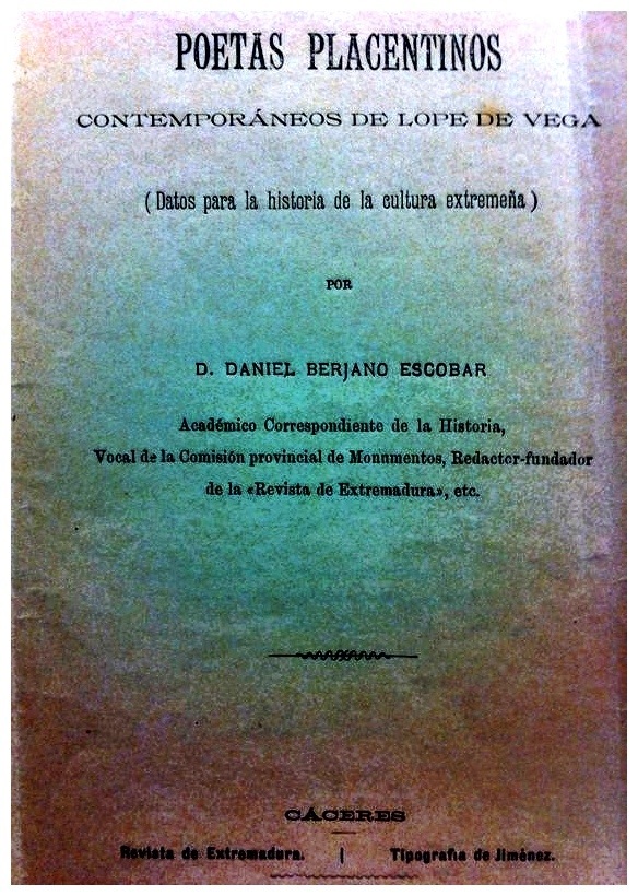 – Berjano, Daniel. Poetas placentinos contemporáneos de Lope de Vega : datos para la historia de la cultura extremeña. .