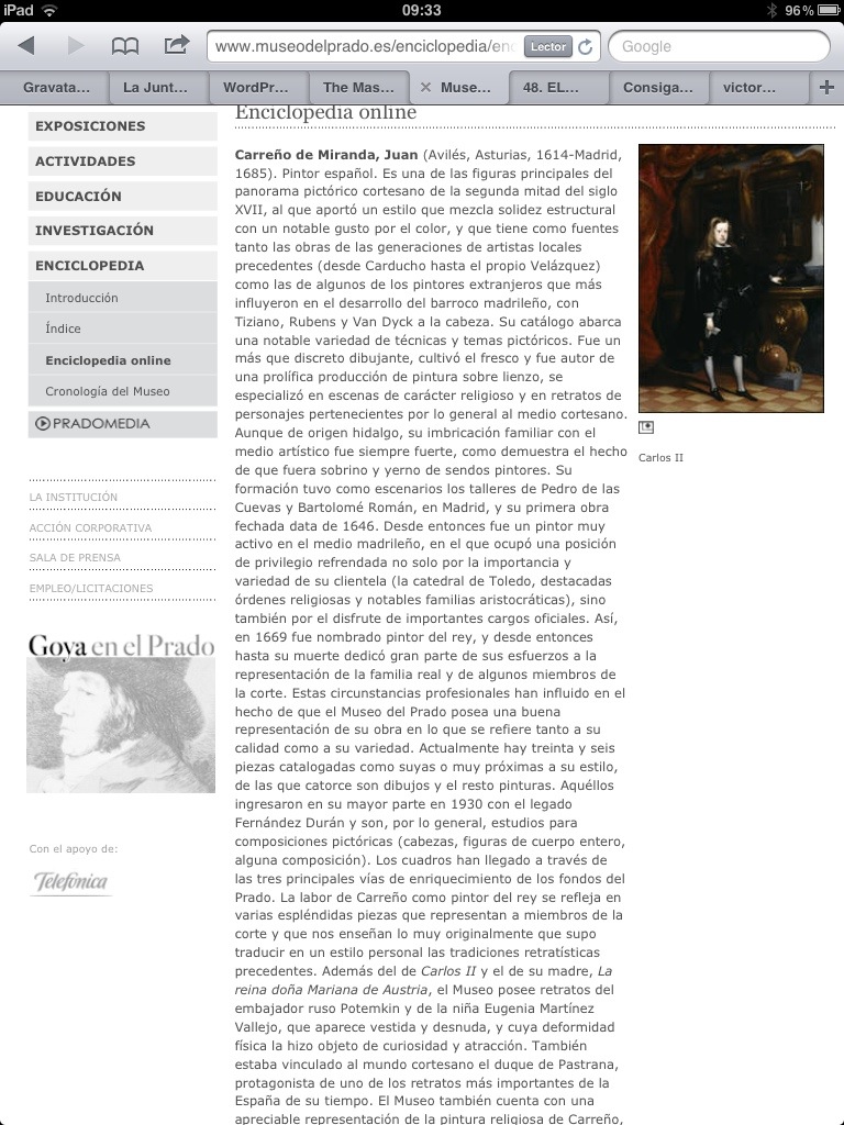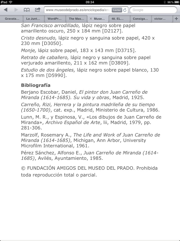 Ejemplar en la BN de su Obra el «Pintor D. Juan Carreño Miranda»