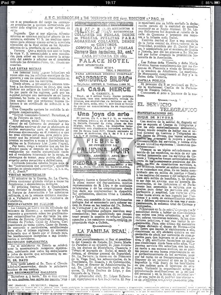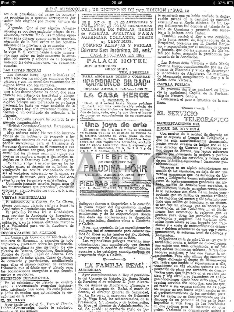 Despacho con el Rey (Alfonso XXIII), 5 de diciembre de 1917 en calidad de Presidente de la Junta Central del Cuerpo de Registradores de la Propiedad