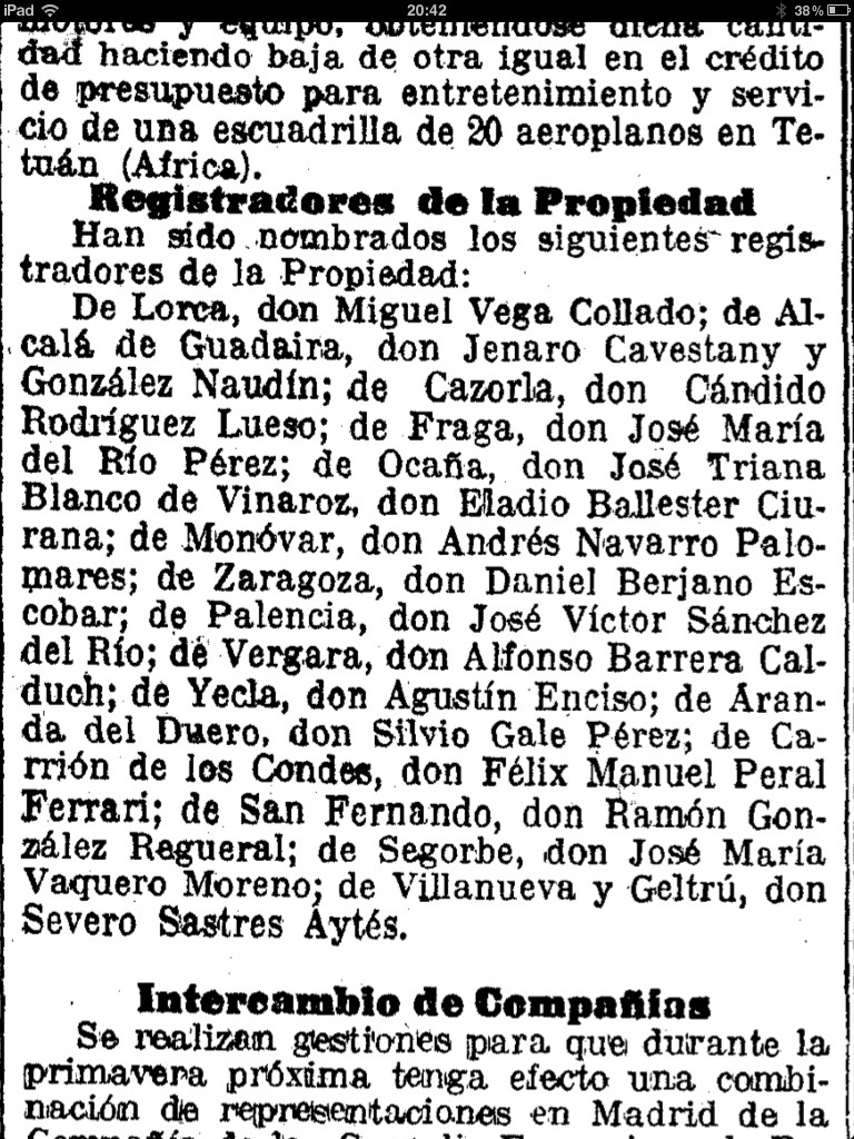 Nombramiento cómo Registrador de la Propiedad de otra demarcación ( Marchena)