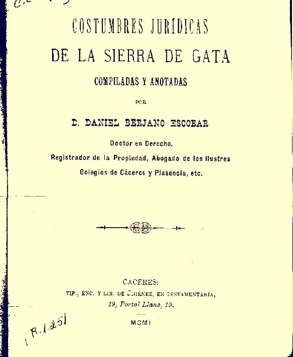 Fantástica publicación de mi Tatarabuelo que agradezco a mi amigo el Historiador «Chuchi del Azevo», sorprende que a día de hoy sigan de facto en activo todas estas costumbres Jurídicas y sirvan para el equilibrio entre los pueblos de la Sierra de Gata.