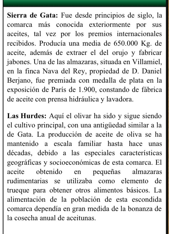Publicación de la D.O de la historia de la producción del aceite de Oliva Virgen en la Sierra de Gata «Página que documenta esta información»: