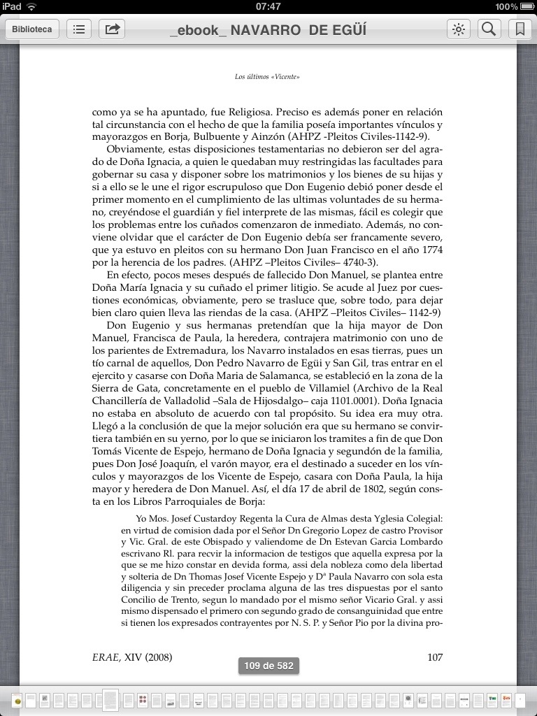 Pleito de Hidalguía librado durante 1772-1774 entre los Hermanos Borjanos :D. Eugenio Navarro de Egüi y D. Juan Fco. Navarro de Egui