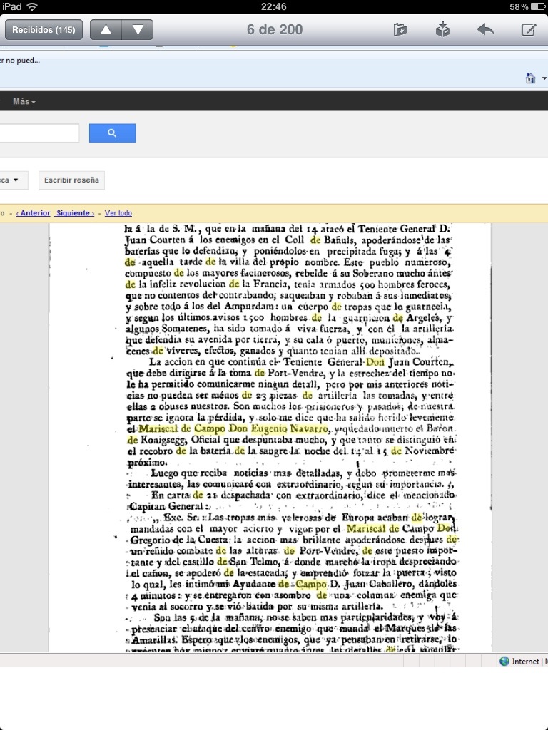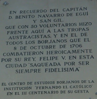 Reconocimiento al CAPITÁN D. Benito Navarro de Egüi y San Gil ( antecesor de los Hermanos en litigio) por su heroica gesta contra las invasoras tropas Austracistas, después de esta se le propuso la Gobernación de Zaragoza y renunció por su edad, el Rey al renunciar nombró en ese desempeño a Palafox.