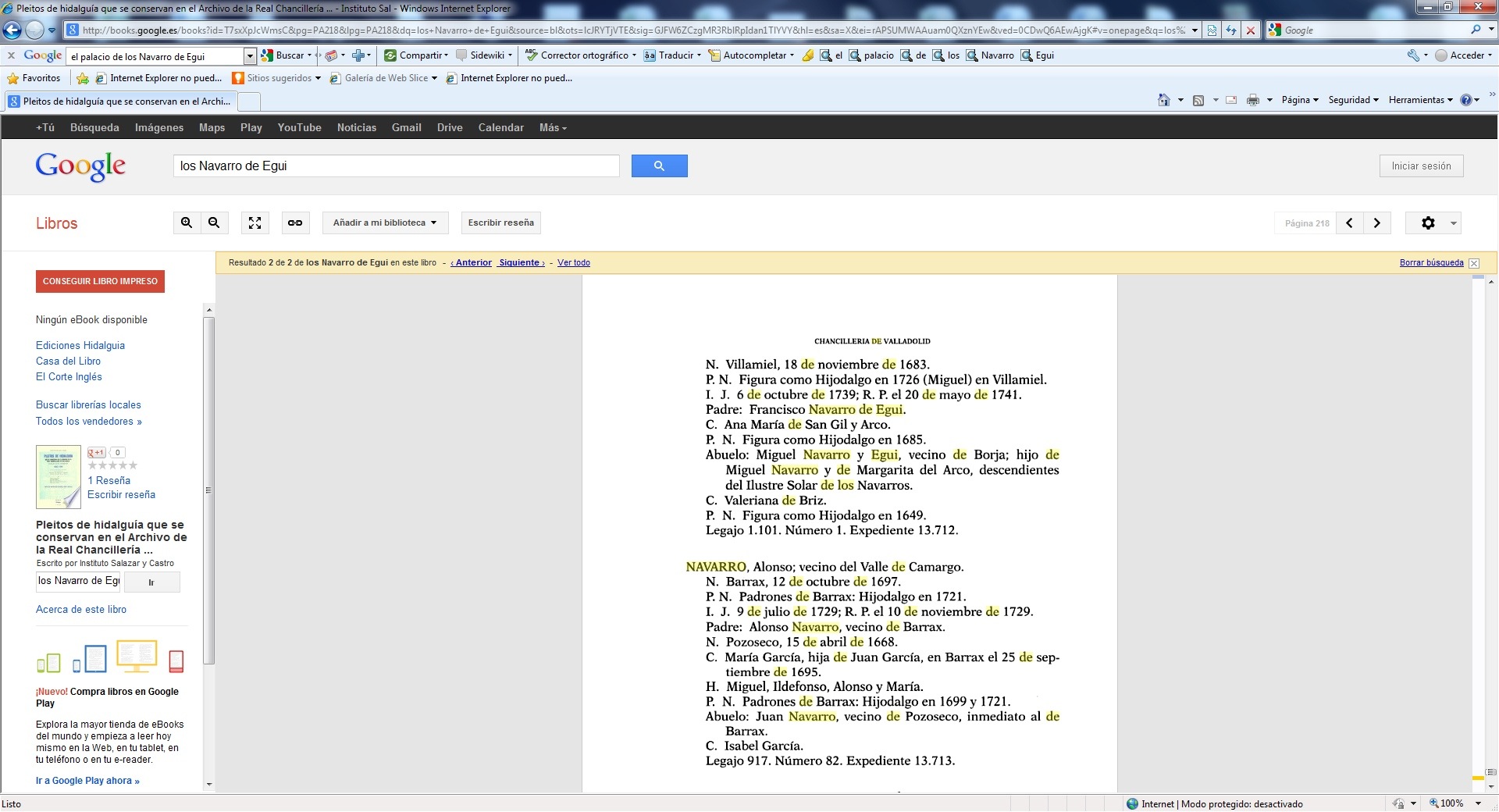 Transcripción y resumen del legajo original en la Real Chancillería de Valladolid, del apellido noble «Navarro de Egüi»