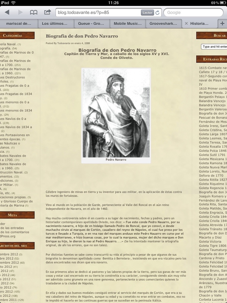 Aquí en este espacio nos adentraremos en los orígenes de mi abuela MªVictoría y Mi Bisabuela Rosario. Mi Bisabuela Rosario Navarro de Egüi desciende de los «Navarro de Egüi» del Alto Aragón y Navarra, del primero que se tiene constancia fue de Don Pedro Navarro que nació en el Valle del Roncal , tuvo una exitosa pero sinuosa y difícil carrera militar que le llevo obtener títulos de nobleza no exentos de muchos disgustos y traiciones.
